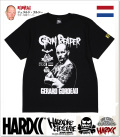 黎明期の総合格闘技界でその悪名を大いに轟かせた男、それがジェラルド・ゴルドーだ!本国オランダではバウンサー(用心棒)の仕事をしていた正真正銘の喧嘩屋ゴルドー、その経歴がなんとも凄い!第2次UWF、前田日明との異種格闘技戦ではそのポテンシャルをイマイチ発揮できなかったが、リングス、KARATE WORLD CUPあたりからその反則攻撃が目立つようになり業界屈指の「要注意人物」に。記念すべきUFC最初の大会、そこで我々はゴルドーの真の恐怖に対面する事となる!トーナメント1回戦でのテイラ・トゥリ戦、ゴルドーは転倒したトゥリの顔面に躊躇なくサッカーボールキック。戦意喪失した相手を更に素手でブン殴り、顔面骨折の洗礼を浴びさせる。決勝ではあのホイス・グレイシーと対戦、敗れはしたものの腕にかみつく蛮行を働く。その悪名が最高潮に達したのが1995年4月20日の「バーリ・トゥード・ジャパン・オープン 1995」。レフェリーの制止を無視して中井祐樹に故意のサミングを繰り返し、中井の右目を失明させるという行為に批判が集まった。このように決して許されない経歴ではあるが、怖いものみたさのファンからは逆に注目される存在となる。プロレス界とも縁が深く、むしろプロレスファンが大好きな格闘家の1人でもある!!!その喧嘩屋ゴルドーとハードコアチョコレートとのコラボが実現!なんとも物騒なデザインとなった!ボディは渋いブラックボディを使用。腕を組みこちらを睨みつける姿は恐怖以外の何物ではないデザイン!しかもバックプリントではその恐怖が倍増する鏡の中の”死神”ゴルドーが!彼の妖気がタップリと吸い込まれたインパクト充分なTシャツになった!ある意味ホラー映画Tシャツより怖い、究極の恐ろしアパレルが誕生だ!(Tシャツカラー:ブラック プリントカラー:ホワイト)