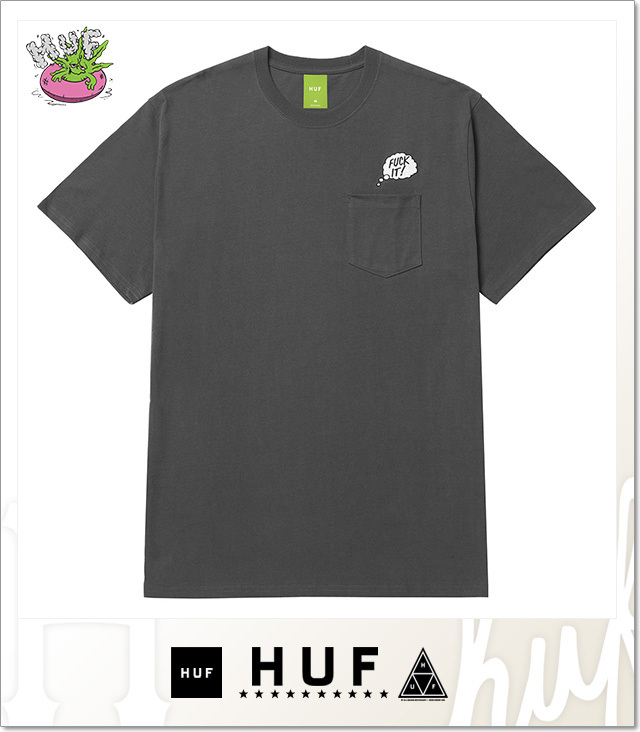 | 商品説明 | 100%コットン素材の半袖ポケットTシャツ。FUCK IT!のカスタムアート刺繍。ポケット内側に隠れたHUFグリーンバディがユーモアある一枚。 |