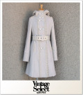 VINTAGE SELECT BY HONEY HONEY COAT:ハイウエストで美しいシルエットのAラインとミリタリー調のホワイトボタン、形の良いフードに毛糸のフリル、サイズは小さめのM。特別なガーリー・コートです!!