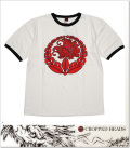 | 商品説明 | 素材はコットン100%!ムラ感のある非常に柔らかなオリジナルボディーを使用!フロントに藤と蝶の家紋を組み合わせた柄を配したアメカジテイストのリンガーTシャツです!バック衿下のCH家紋柄は刺繍になっています! |