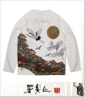 | 商品説明 | ボディはヘビーウェイト生地を使用!フロントに鯉家紋と松のプリント、翔鶴が刺繍!バックは、松並木に鶴のプリント刺繍! |