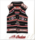 | 商品説明 | ラグマットやブランケットでお馴染みのネイティブな柄のニットベスト!ローゲージのざっくりとした素材感が寒い季節にピッタリのベストです!人気のショールカラーでシャツとの相性は抜群!フロントはコンチョボタンにヒモを巻きつける仕様! |