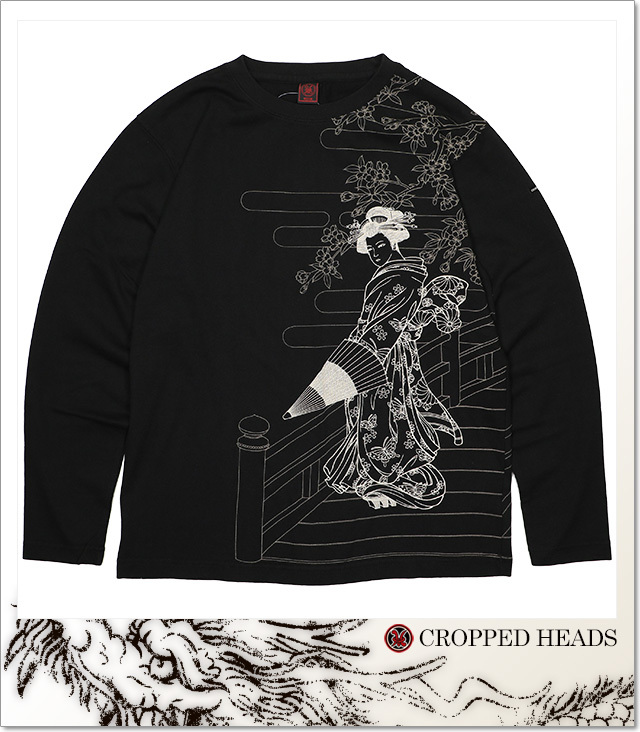 | 商品説明 | 素材はコットン100%(スラブ天竺)!フロント&バックにそれぞれ美人絵と夜叉を描いたロンT!フロントの美女が番傘を開くと夜叉に変身?!桜が咲き誇り、着物にも、菊や桜、蝶などのデザイン! |